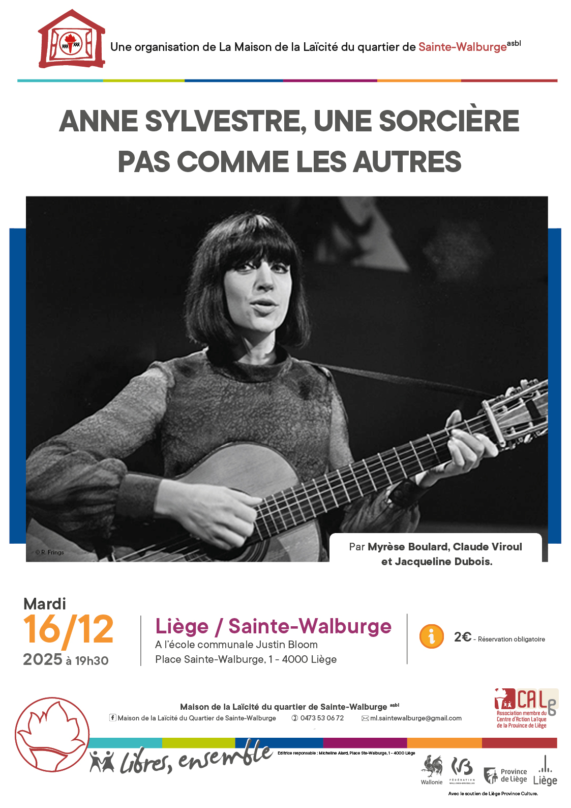 Anne Sylvestre a touché à d’innombrables problèmes de société, et particulièrement aux rôles que la société assigne à la femme. Des extraits de chansons, lus, ou interprétés par Anne Sylvestre ou son amie Pauline Julien, donneront un aperçu de l’éclectisme de son répertoire et suivront la femme, depuis son enfance jusqu’à sa vieillesse.